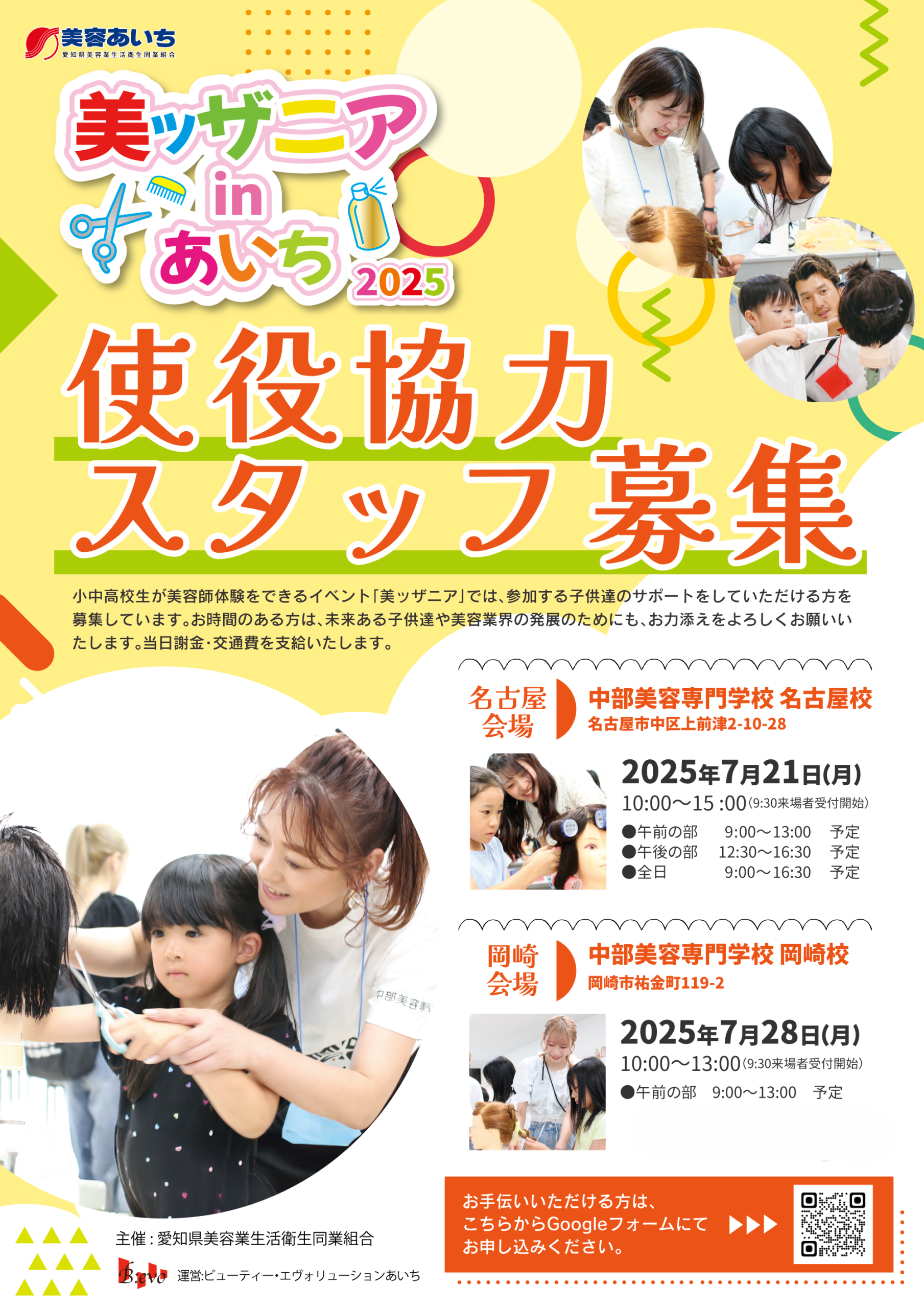 昨年、中部美容専門学校名古屋校・岡崎校で開催し好評だった小・中学生、高校生向けの美容師体験イベント「美ッザニア in あいち」を今年も開催することになりました!