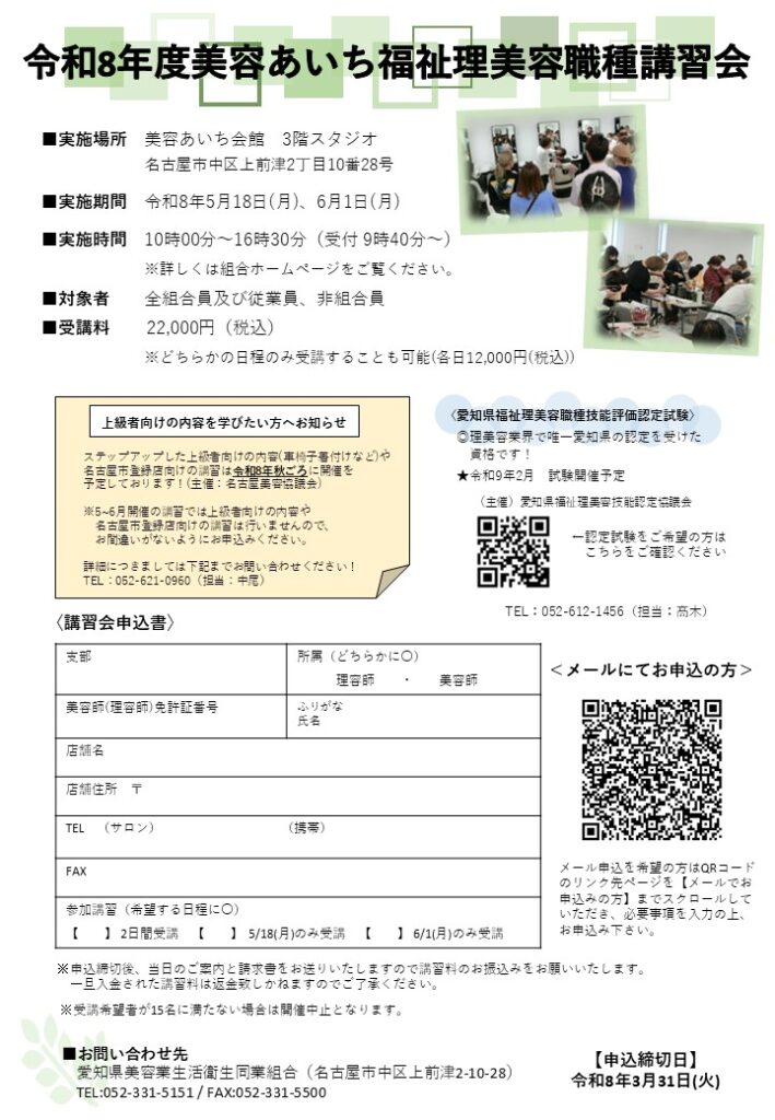 ☆令和8年度美容あいち福祉理美容職種講習会を開催いたします!