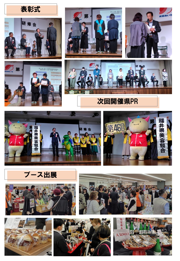 続く表彰式では、昨年富山県において開催された第44回東海北信越美容研修会の表彰も併せて行われ、愛知県からは第44回10名、第45回11名の方が受賞されました。